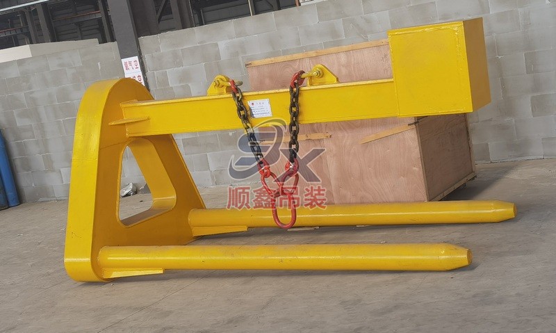 C型吊具適用于鋼卷的水平吊運,由吊具體和配重鐵組成。主體部分由合金鋼和鋼管拼接而成,截面為箱型結(jié)構(gòu),配重鐵起調(diào)節(jié)吊具平衡的作用,使吊具和被吊物的重心在一條線內(nèi)。載荷范圍:3.2-32噸。